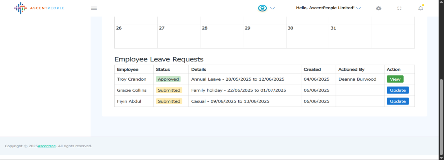 This gives an overview of all the employees on leave.