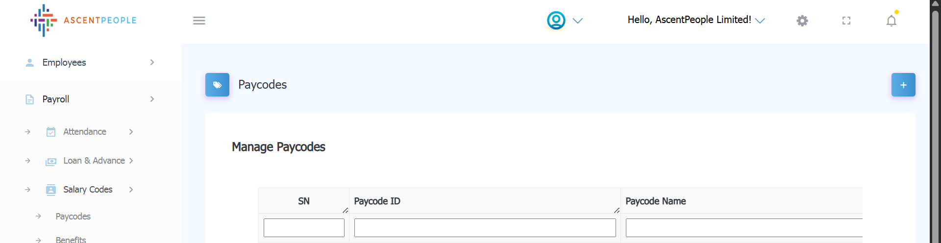 i. Employees can be added by clicking the plus icon at the right side of this page.