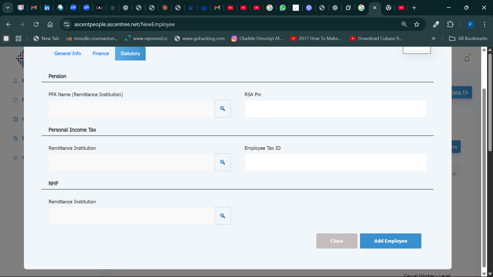 This tab consists of 3 sections: Pension, Personal Income Tax and NHF.